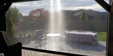 Roll down Clear vinyl screens provide durable protection against wind, rain, hail, snow, dust and light flying debris. They block up to 98% of UV rays without obstructing the view to the outside and are best suited for residential and commercial outdoor seating areas or patio and deck enclosures.