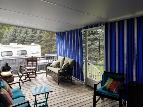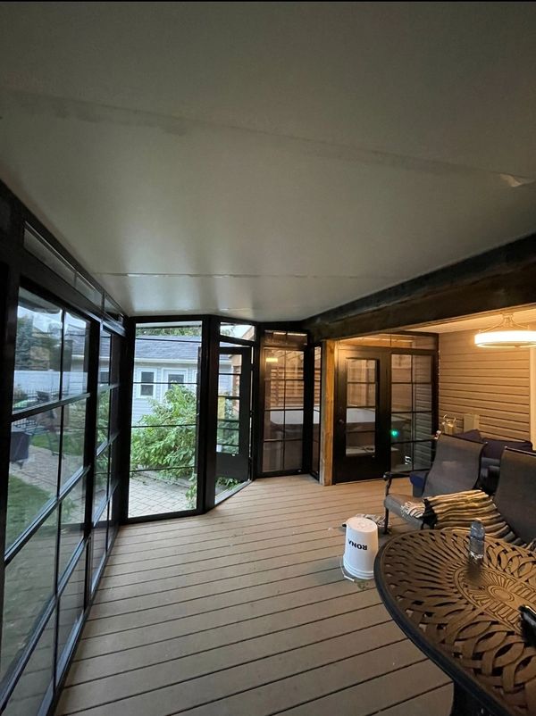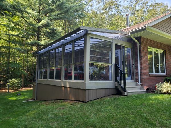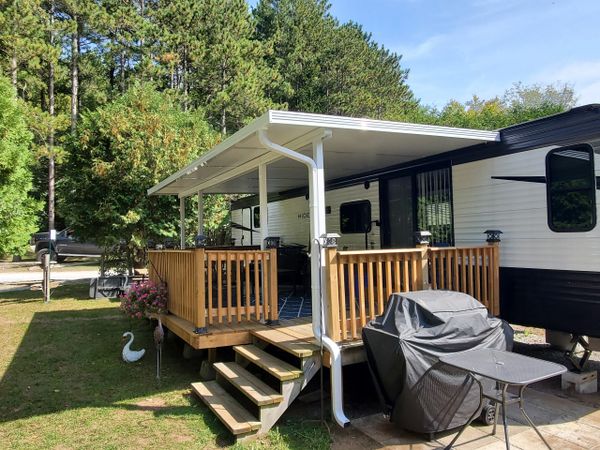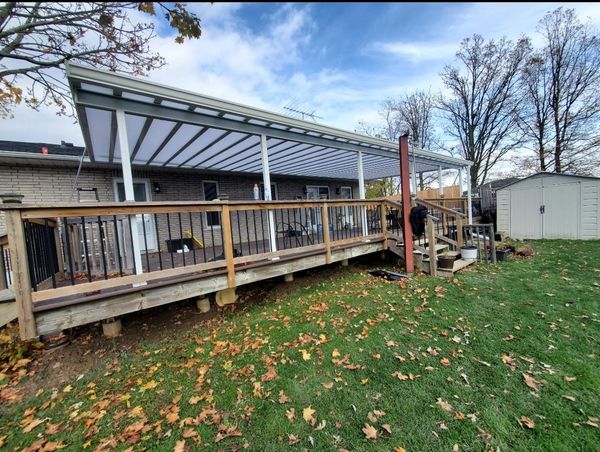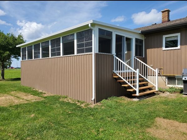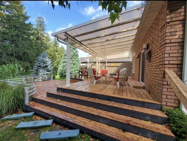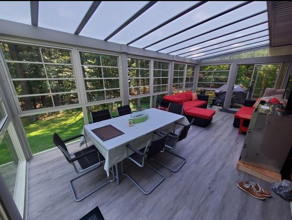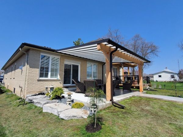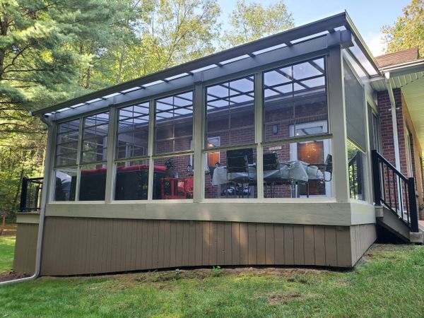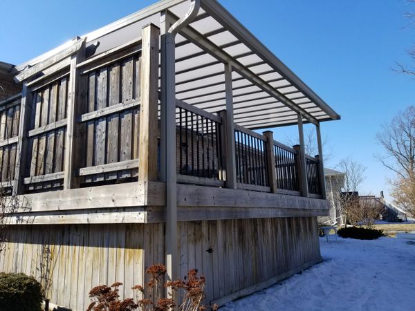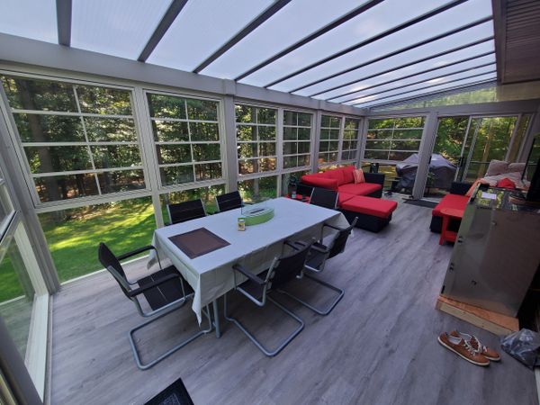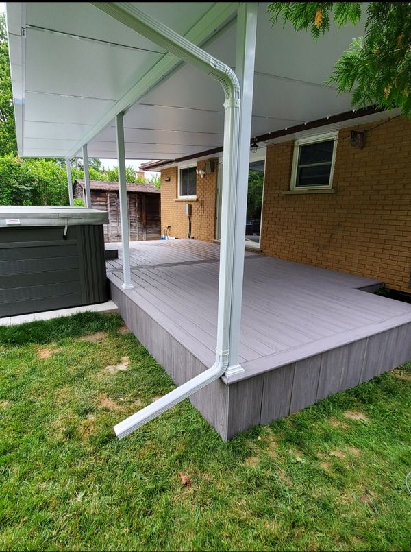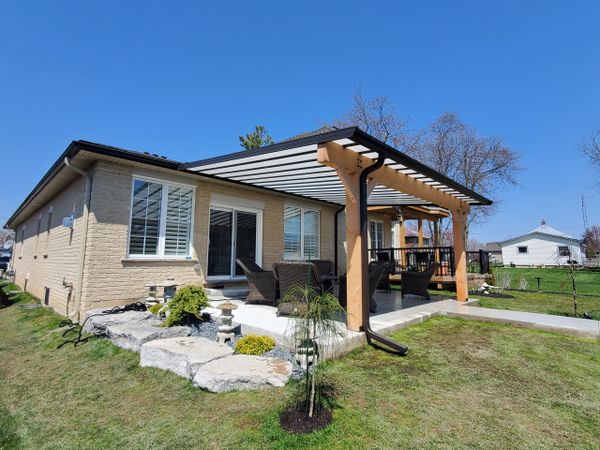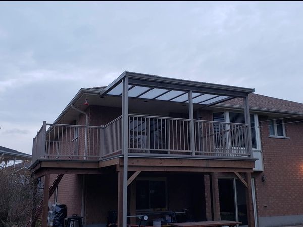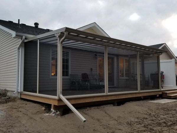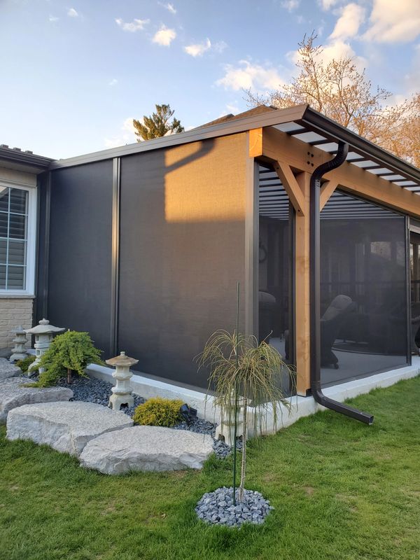 Our hard top patio covers provide a bright room with a white ceiling and multiple colour options for the trim. We can use the patio cover as a stand alone cover or we can screen them in or build them into a sunroom.
